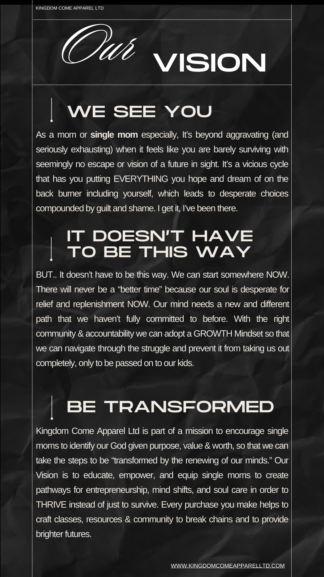 We're more than just clothing.. we're committed to helping women, especially single moms, identify their calling and God given identity in order to THRIVE instead of to just survive. We break barriers & prioritize our purpose! Each purchase you make helps to create pathways and tangible resources to make it happen!